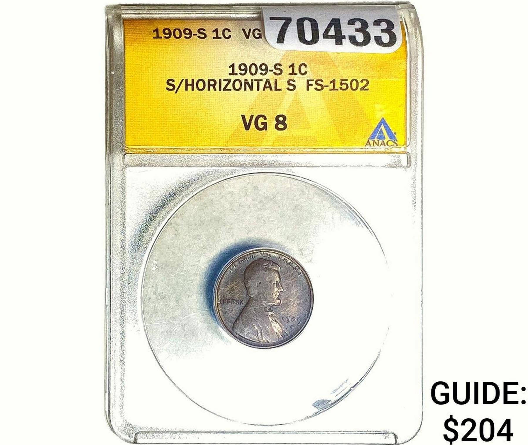 1909-S Wheat Cent ANACS VG8 S/Horizontal S FS-1502