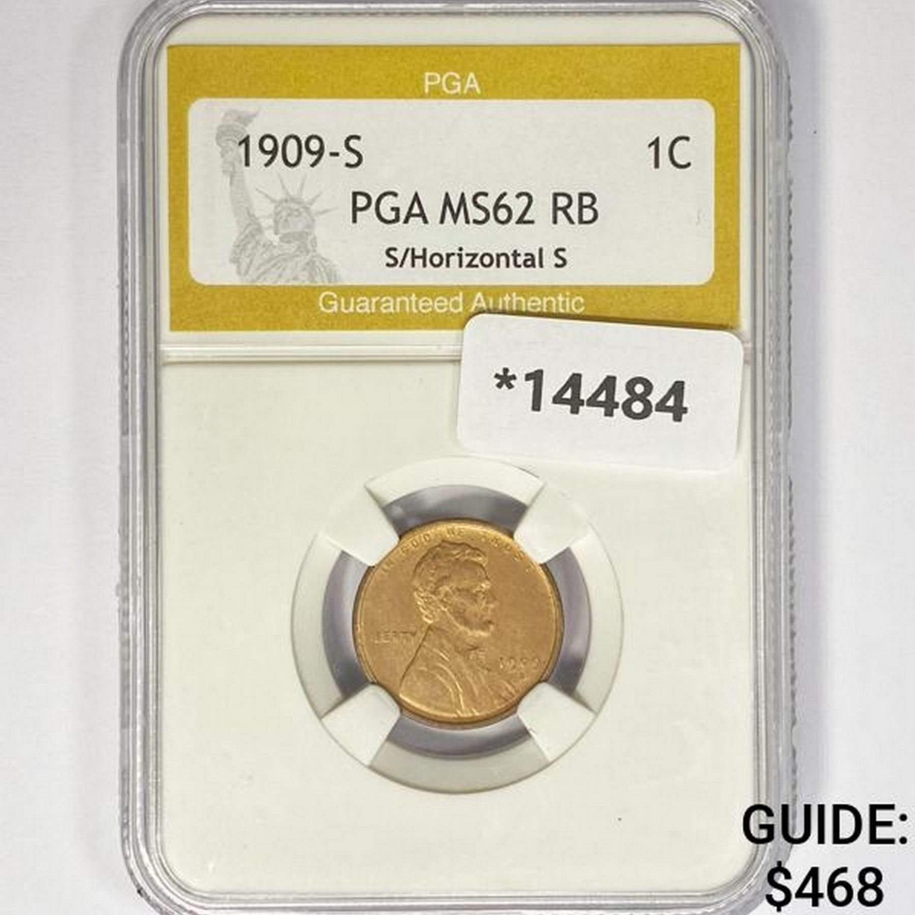 1909-S Wheat Cent PGA MS62 RB, S/Horizontal S