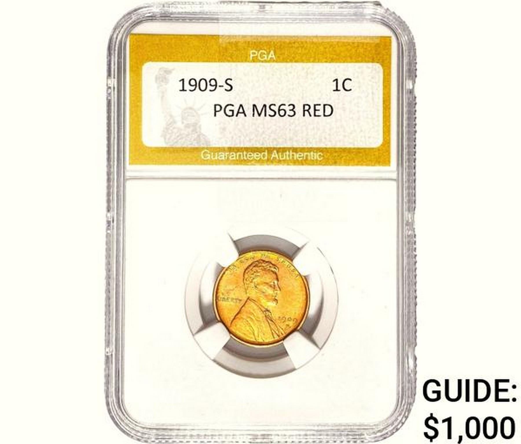 1909-S Wheat Cent PGA MS63 Red