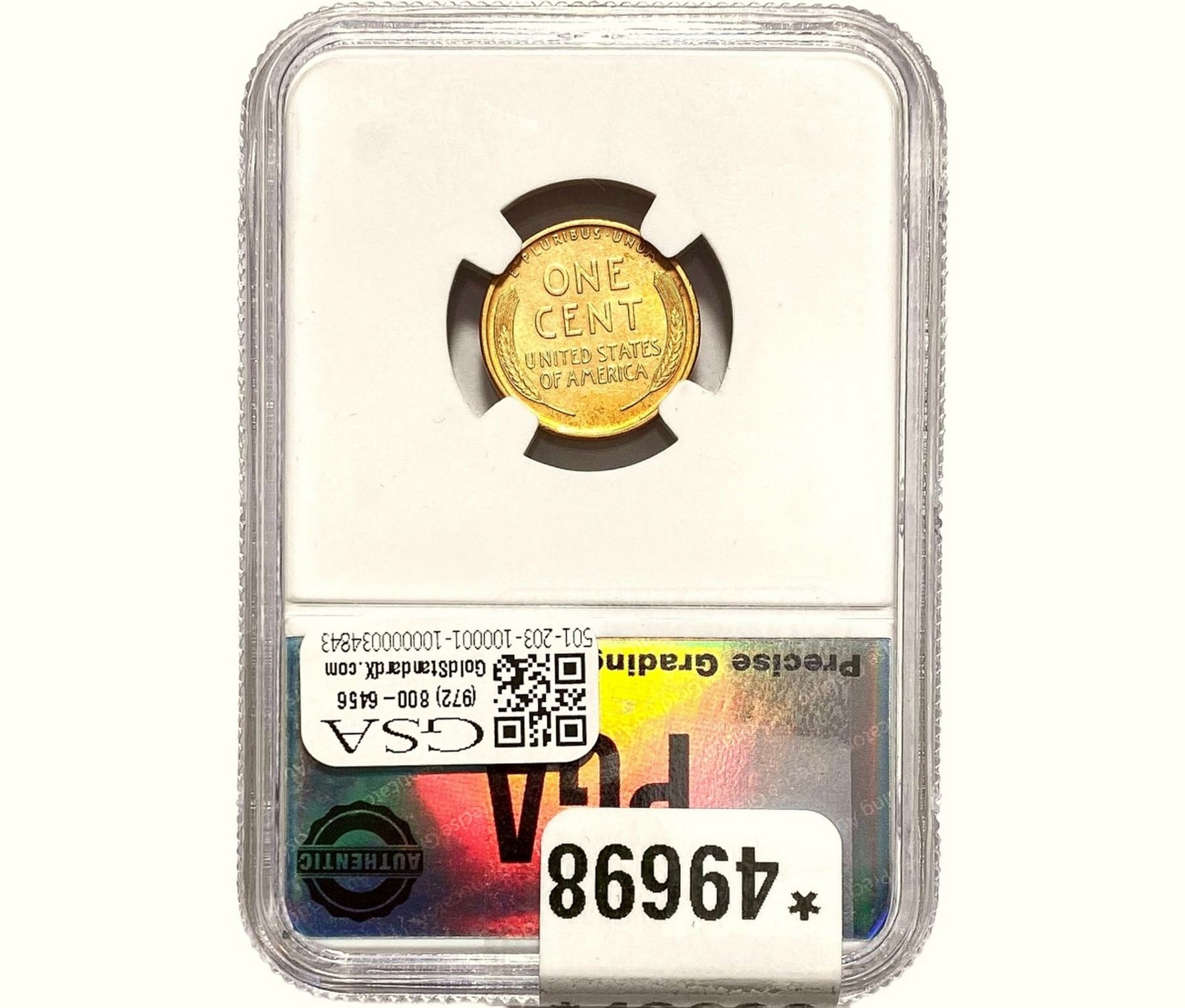 e. Coins sold referencing a third-party grading service are sold “AS IS” without any express or implied warranty, except for a guarantee by GSA that they are genuine. Removal or alteration of the holder, voids all of Bidder’s claims concerning that Product. Certain warranties may be available from the grading services and Bidders are referred to them for further details: Numismatic Guaranty Corporation (NGC), PO Box 4776, Sarasota, FL 34230, www.ngccoin.com/services/writtenguarantee.asp; Professional Coin Grading Services (PCGS), PO Box 9458, Newport Beach, CA 92658, www.pcgs.com/guarantee.html; ANACS, 6555 S. Kenton St., Ste. 303, Englewood, CO 80111; and Independent Coin Grading Co. (ICG), 7901 East Bellview, Ave., Suite 50, Englewood, CO 80111.