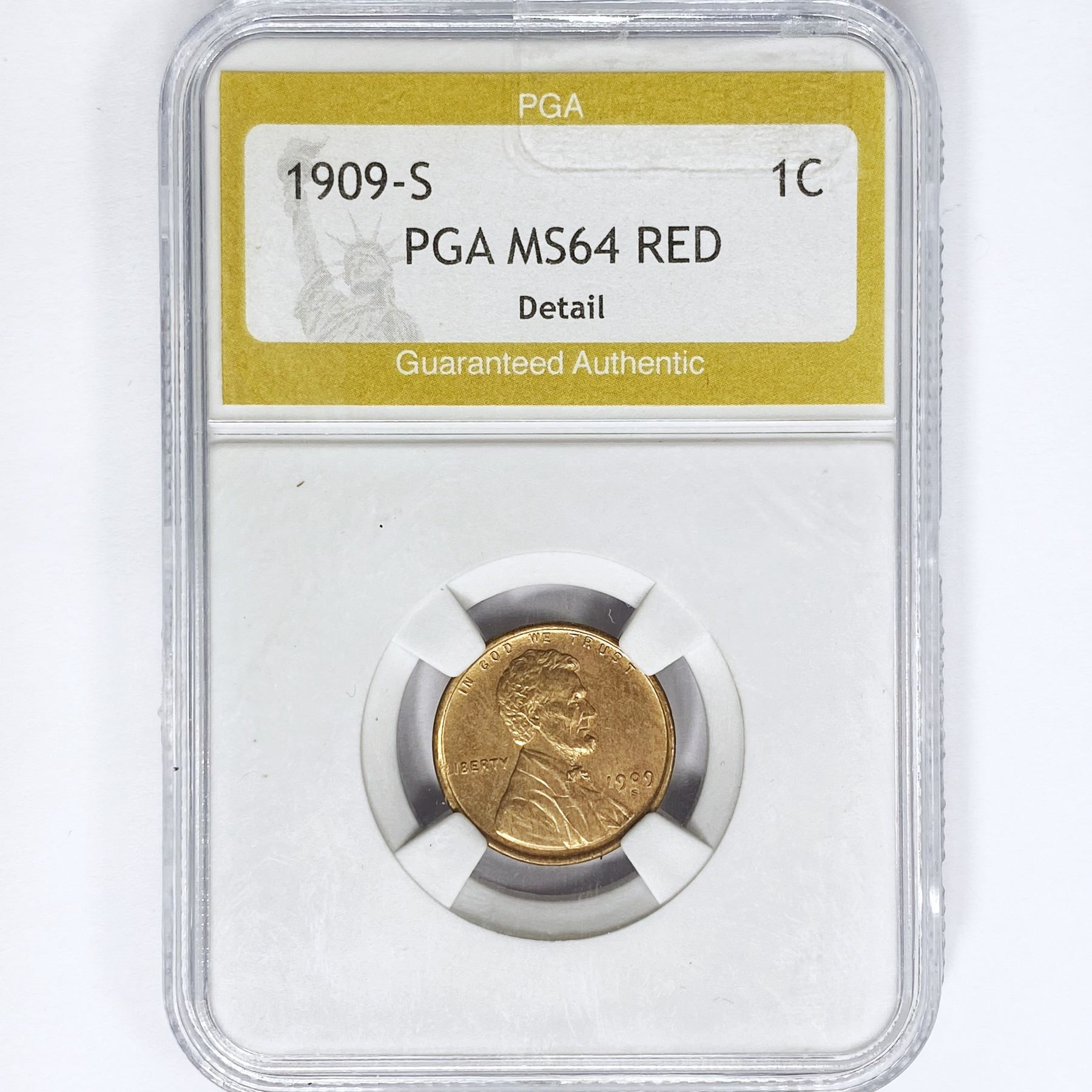 1909-S Wheat Cent PGA MS64 RED, Detail