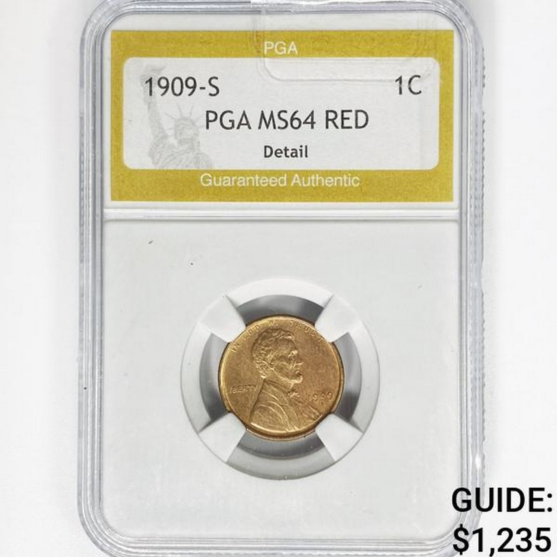 1909-S Wheat Cent PGA MS64 RED, Detail