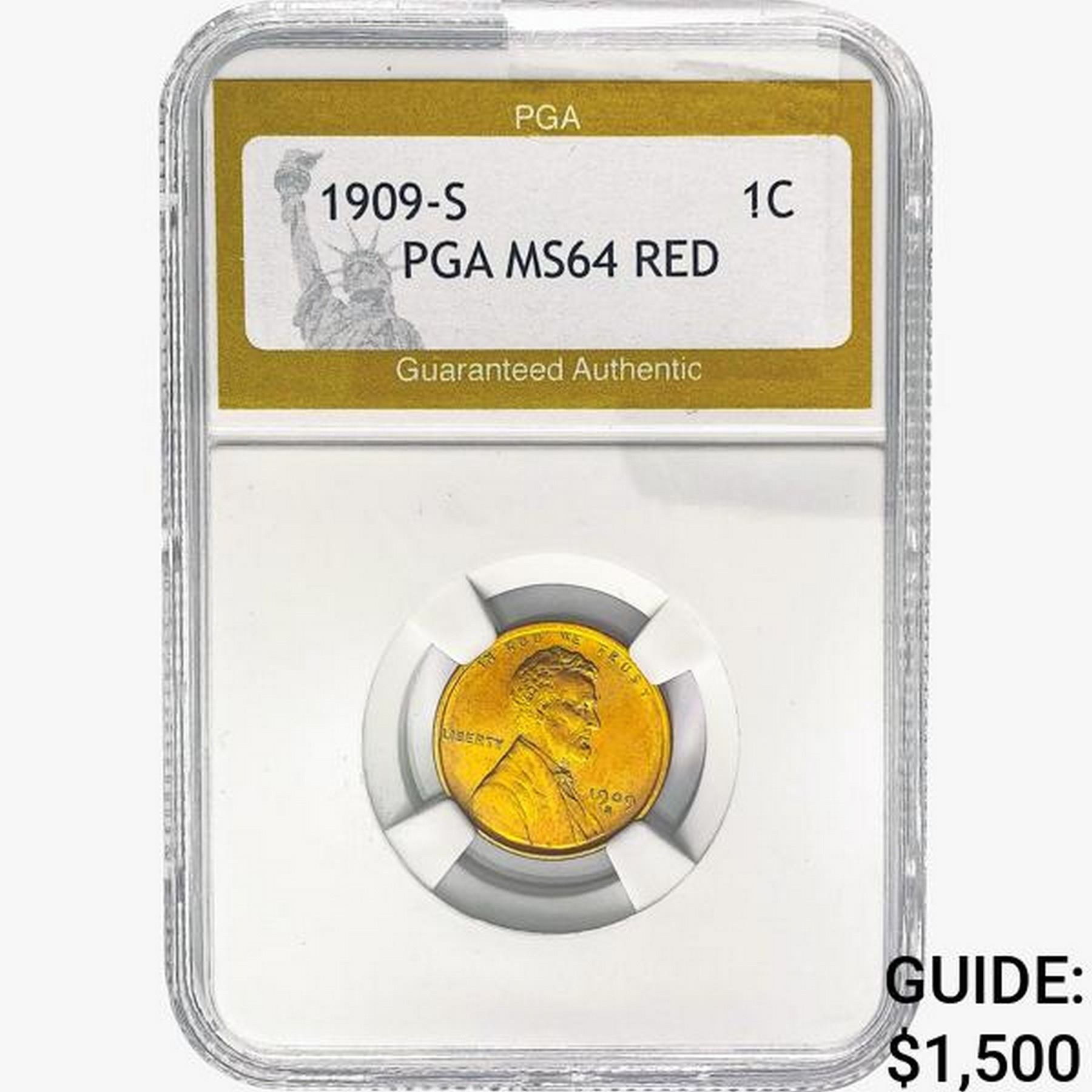 1909-S Wheat Cent PGA MS64 RED