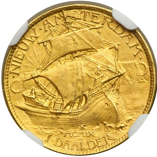 1909 SC$1 HK-371 Rarity 7. NGC graded MS-65. Hendrik Hudson Daalder. Hudson-Fulton Celebration struck in gold.