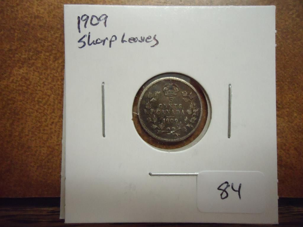1909 SHARP/BROAD LEAVES CANADA SILVER 5 CENTS