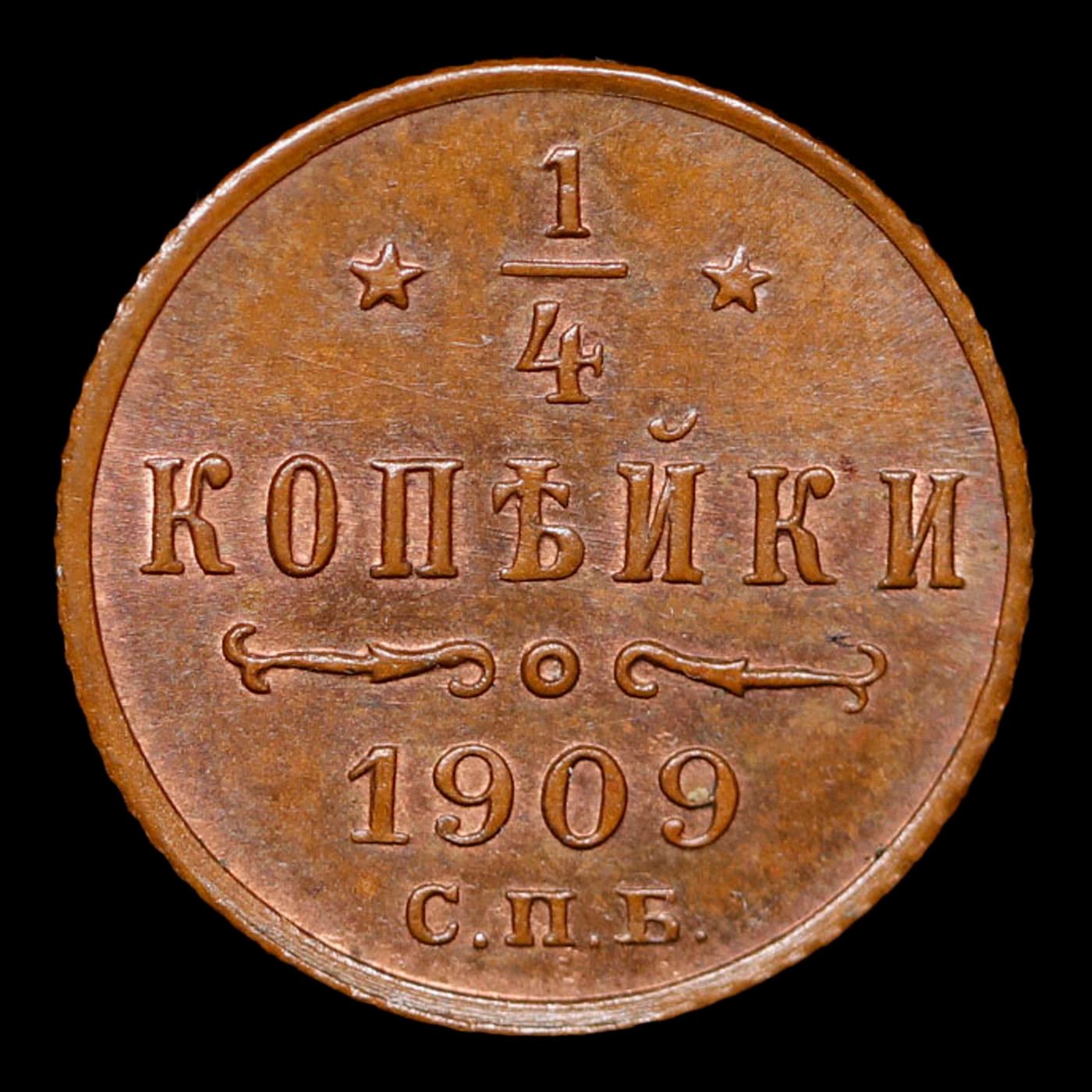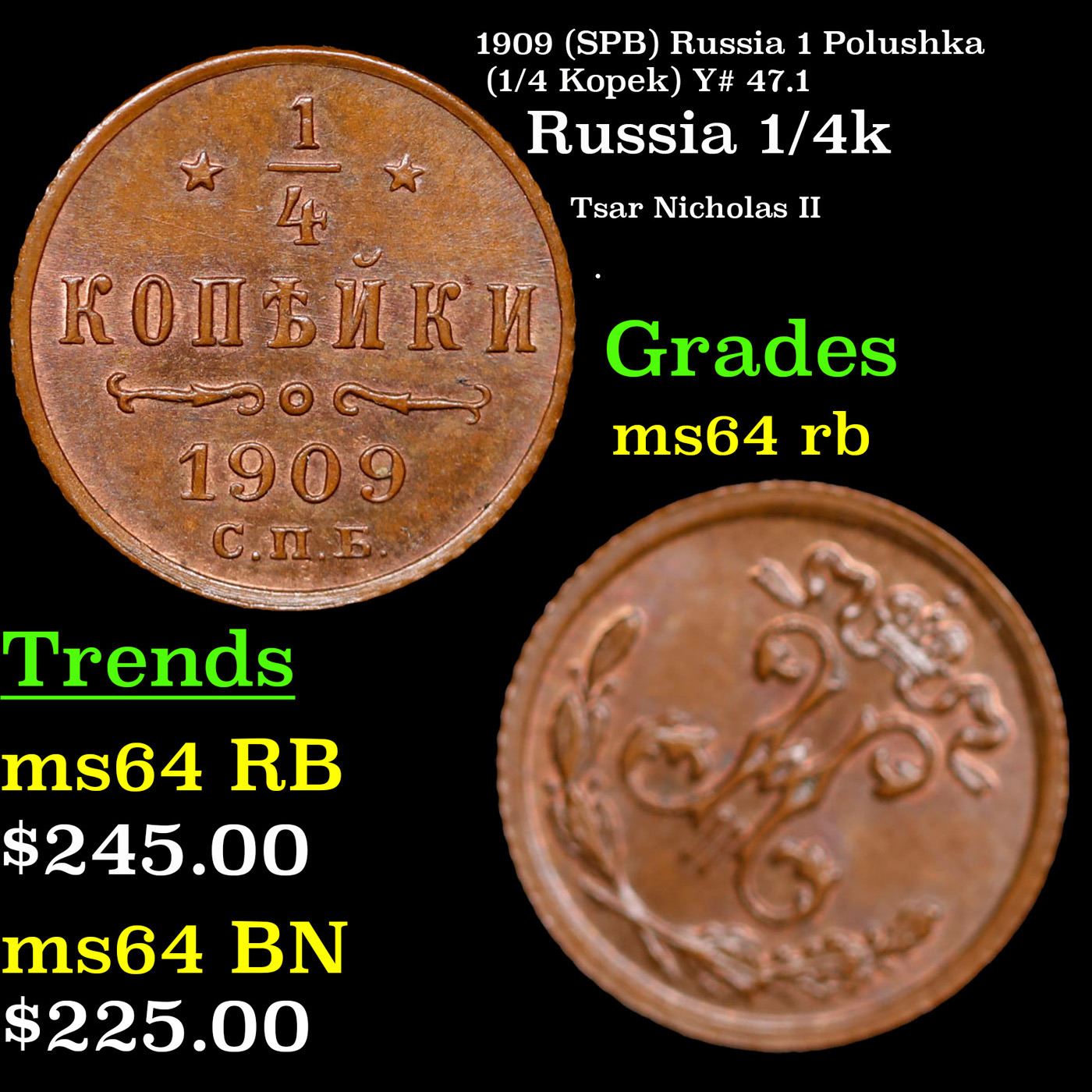 1909 (SPB) Russia 1 Polushka (1/4 Kopek) Y# 47.1 Grades Choice Unc RB.
