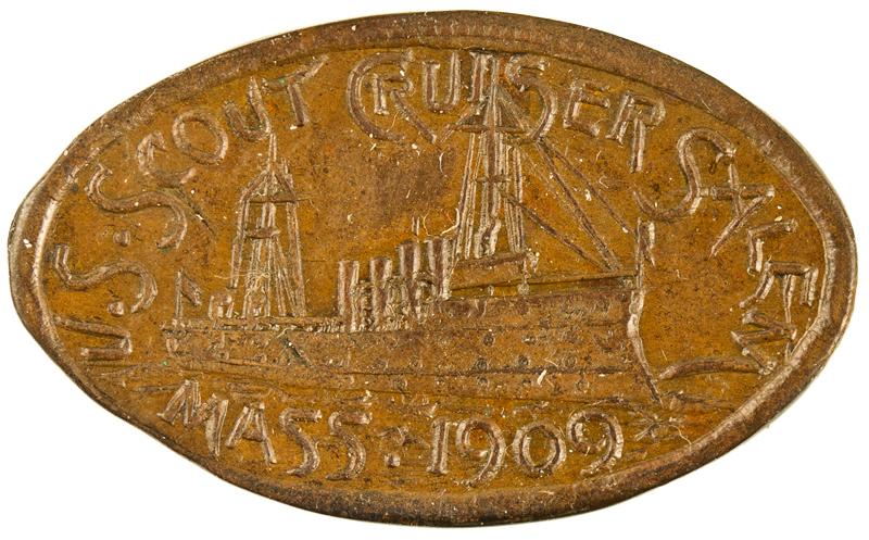 (Ship Afloat)/ Mass. 1909 // (Elongated 1908 Indian Cent) Copper 30mm x 18mm