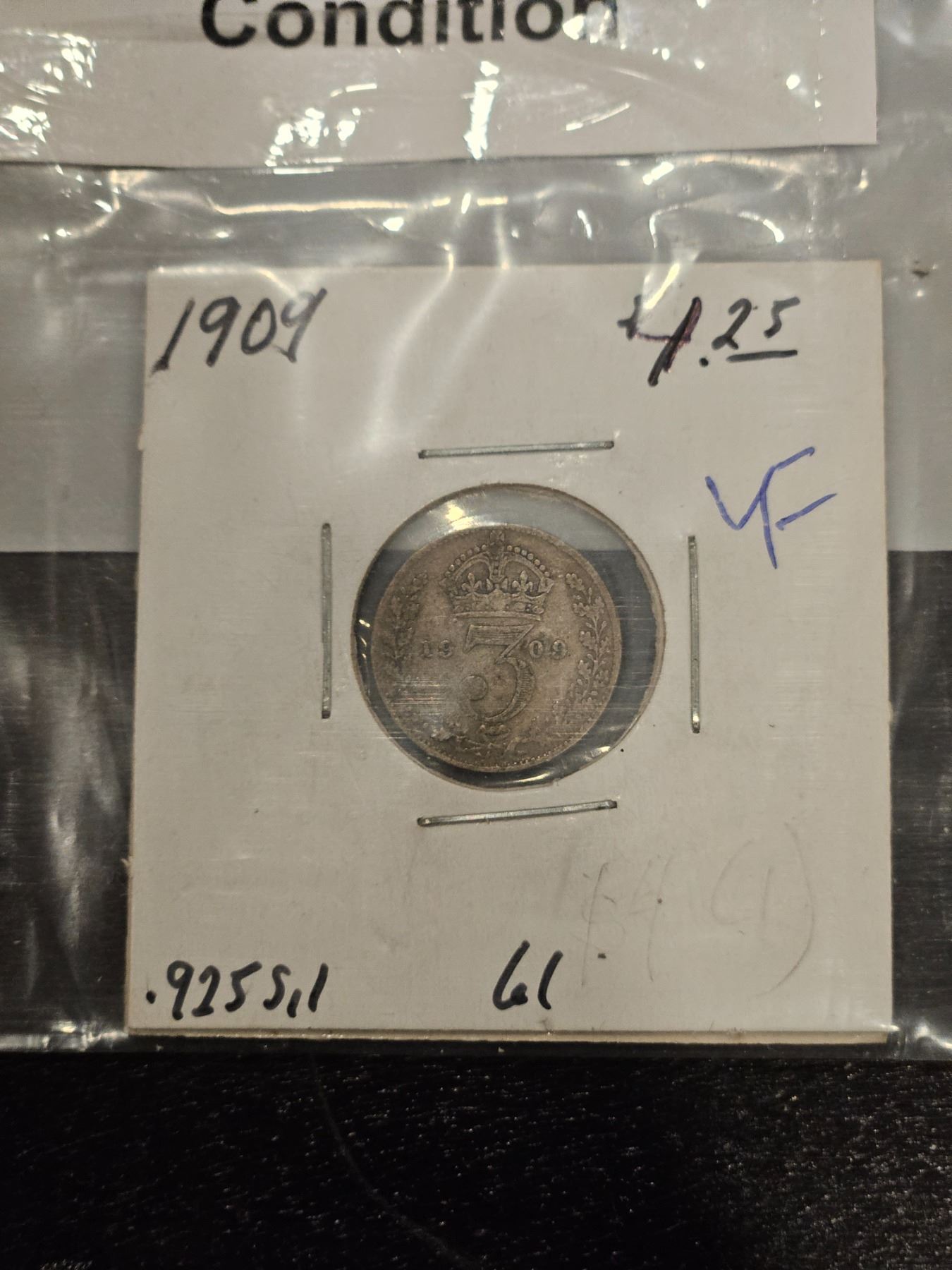 1909 UK 3 pences Coin