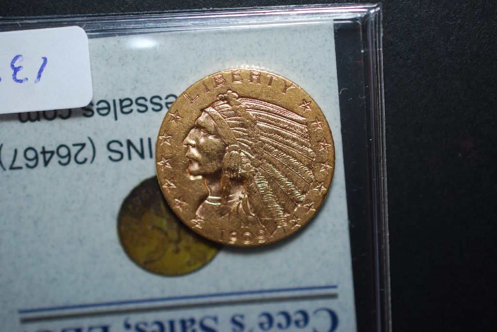 1909 US Indian Chief $5 Gold Coin; EST. $550-650
