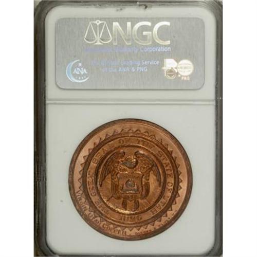 <B>1909 Utah Dollar, HK-359, MS66 Red and Brown NGC.</B></I> Copper, 38.1 mm, "very scarce" (HK, 1963). A beautiful Premium Gem of this well-produced issue, with sunset-orange surfaces that appear close to a full Red designation. The single finest graded at NGC in Red and Brown, although there are three MS66 Reds as well at that service (8/07).<BR><BR><b>Shipping:</b> Coins & Currency (<a target="_blank" href="http://www.heritageauctions.com/common/shipping.php">view shipping information</a>)
