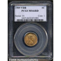 <B>1909 VDB 1C MS66 Red PCGS.</B></I> Imposing luster and a meticulous strike combine with rich olive-gold color for outstanding eye appeal. A handsome example of this popular single year type.