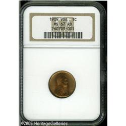 <B>1909 VDB 1C MS67 Red NGC.</B></I> Lustrous surfaces reveal a mix of copper-orange and pale green patina. Sharply struck, and no significant marks. Lot:5360