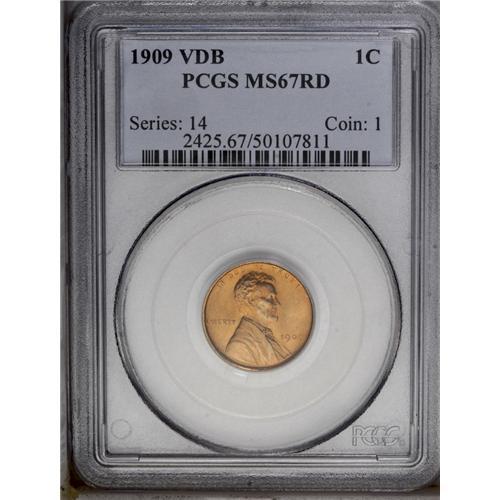 1909 VDB 1C MS67 Red PCGS. Glowing, cherry-red color a