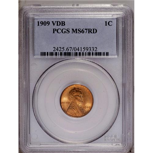 <B>1909 VDB<1C> MS67 Red PCGS.</B></I> Impeccably preserved, with bright, fresh, red-orange color and sparkling mint luster. Virtually unimprovable quality for this first-year Lincoln. Population: 178 in 67, 1 finer (2/06).