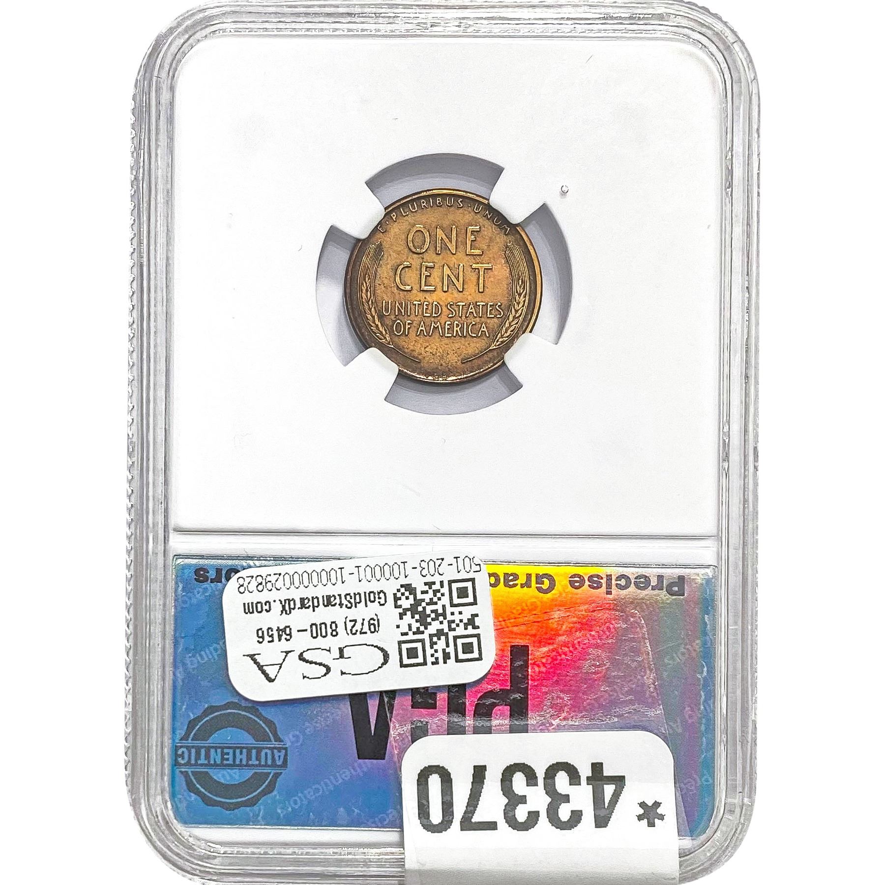 e. Coins sold referencing a third-party grading service are sold “AS IS” without any express or implied warranty, except for a guarantee by GSA that they are genuine. Removal or alteration of the holder, voids all of Bidder’s claims concerning that Product. Certain warranties may be available from the grading services and Bidders are referred to them for further details: Numismatic Guaranty Corporation (NGC), PO Box 4776, Sarasota, FL 34230, www.ngccoin.com/services/writtenguarantee.asp; Professional Coin Grading Services (PCGS), PO Box 9458, Newport Beach, CA 92658, www.pcgs.com/guarantee.html; ANACS, 6555 S. Kenton St., Ste. 303, Englewood, CO 80111; and Independent Coin Grading Co. (ICG), 7901 East Bellview, Ave., Suite 50, Englewood, CO 80111.