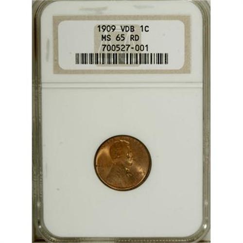 <B>1909 VDB 1C MS65 Red NGC.</B></I> NGC Census: (1741/1082). PCGS Population (3204/1707). Mintage: 27,995,000. Numismedia Wsl. Price for NGC/PCGS coin in MS65: $95. (#2425)<BR><BR><B>Coin Engraver:</B> Victor D. Brenner<BR><BR><b>Shipping:</b> Coins & Currency (<a target="_blank" href="http://www.heritageauctions.com/common/shipping.php">view shipping information</a>)