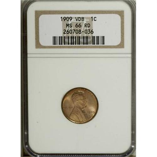 <B>1909 VDB 1C MS66 Red NGC.</B></I> NGC Census: (1010/72). PCGS Population (1523/185). Mintage: 27,995,000. Numismedia Wsl. Price for NGC/PCGS coin in MS66: $240. (#2425)<BR><BR><B>Coin Engraver:</B> Victor D. Brenner<BR><BR><b>Shipping:</b> Coins & Currency (<a target="_blank" href="http://www.heritageauctions.com/common/shipping.php">view shipping information</a>)
