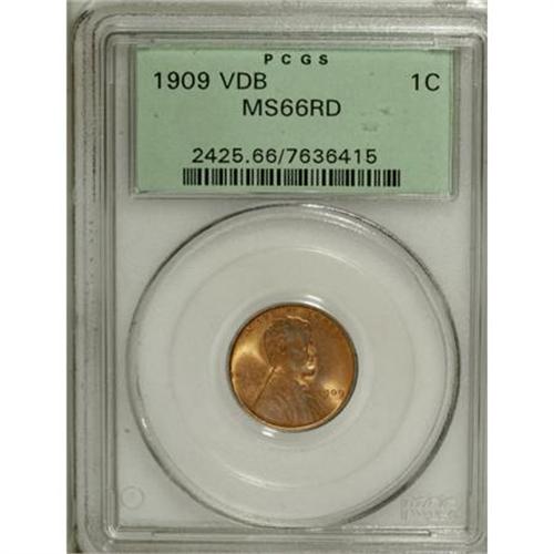 <B>1909 VDB 1C MS66 Red PCGS.</B></I> PCGS Population (1523/185). NGC Census: (1010/72). Mintage: 27,995,000. Numismedia Wsl. Price for NGC/PCGS coin in MS66: $240. (#2425)<BR><BR><B>Coin Engraver:</B> Victor D. Brenner<BR><BR><b>Shipping:</b> Coins & Currency (<a target="_blank" href="http://www.heritageauctions.com/common/shipping.php">view shipping information</a>)