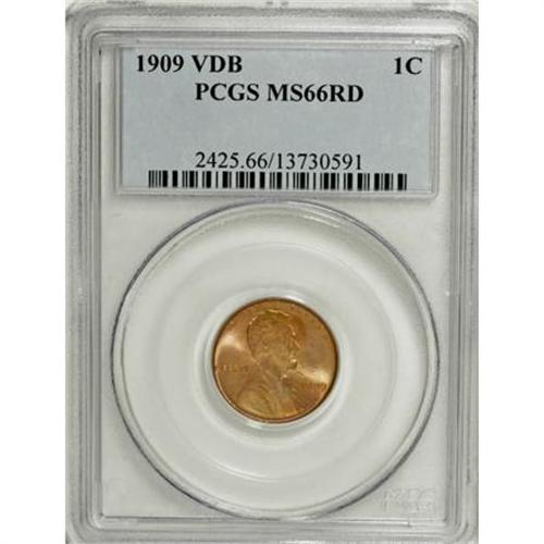 <B>1909 VDB 1C MS66 Red PCGS.</B></I> PCGS Population (1556/185). NGC Census: (1008/72). Mintage: 27,995,000. Numismedia Wsl. Price for NGC/PCGS coin in MS66: $240. (#2425)<BR><BR><B>Coin Engraver:</B> Victor D. Brenner<BR><BR><b>Shipping:</b> Coins & Currency (<a target="_blank" href="http://www.heritageauctions.com/common/shipping.php">view shipping information</a>)