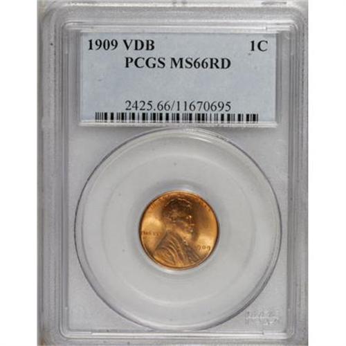 <B>1909 VDB 1C MS66 Red PCGS.</B></I> PCGS Population (1556/185). NGC Census: (1010/72). Mintage: 27,995,000. Numismedia Wsl. Price for NGC/PCGS coin in MS66: $240. (#2425)<BR><BR><B>Coin Engraver:</B> Victor D. Brenner<BR><BR><b>Shipping:</b> Coins & Currency (<a target="_blank" href="http://www.heritageauctions.com/common/shipping.php">view shipping information</a>)