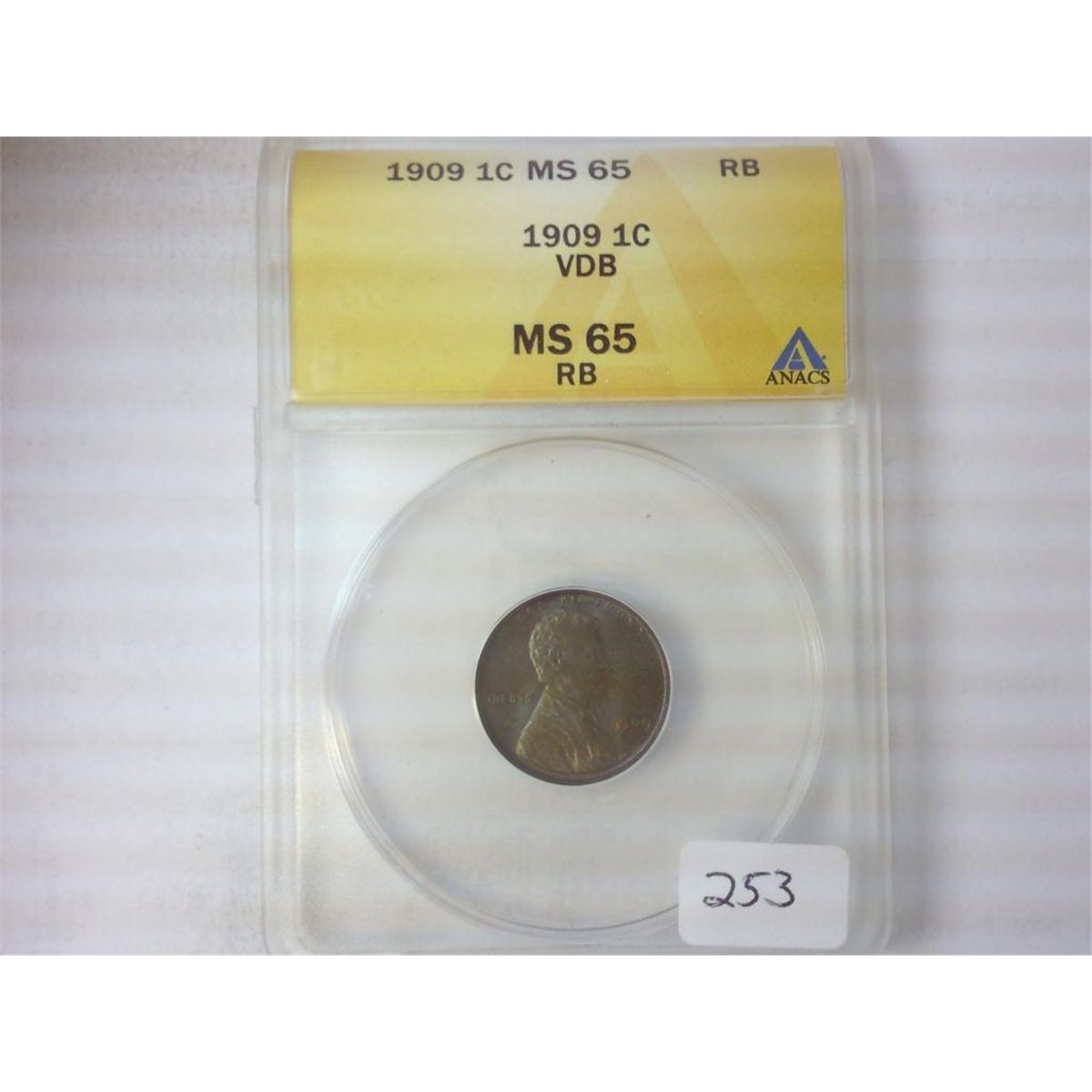 1909 VDB LINCOLN CENT ANACS MS65 RB