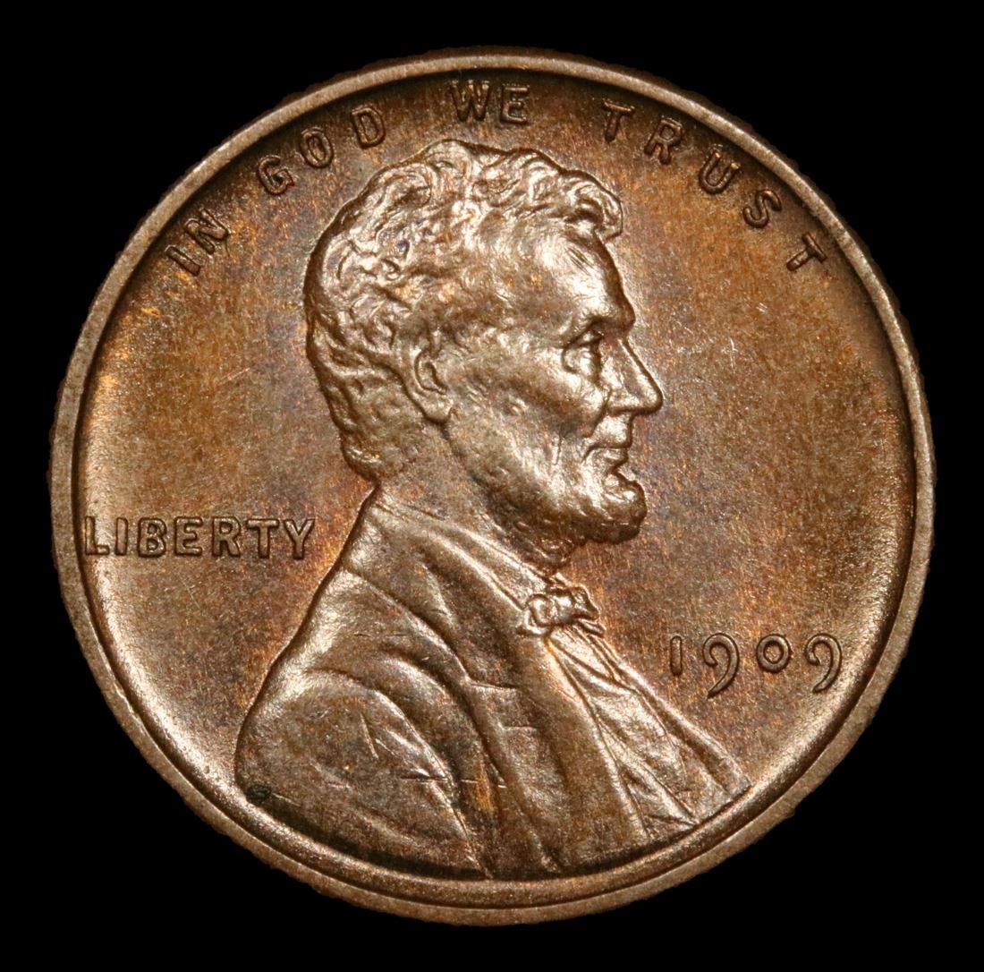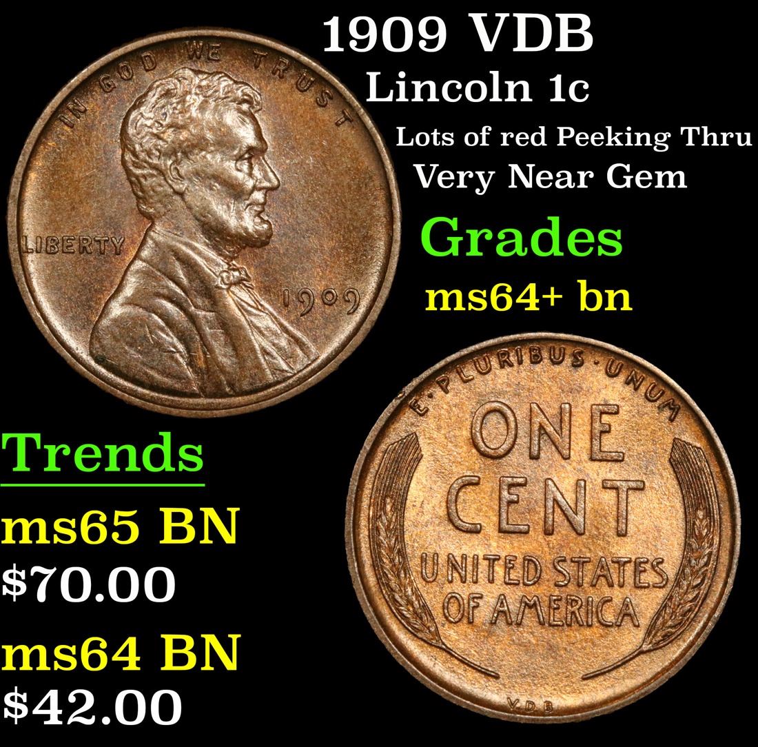 1909 VDB Lots of red Peeking Thru Very Near Gem Lincoln Cent 1c Grades Choice+ Unc BN. Always sought after date. Always popular.