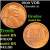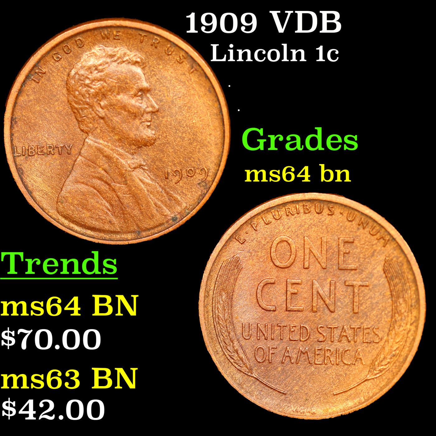 1909 VDB Lincoln Cent 1c Grades Choice Unc BN. Always sought after date. Always popular.