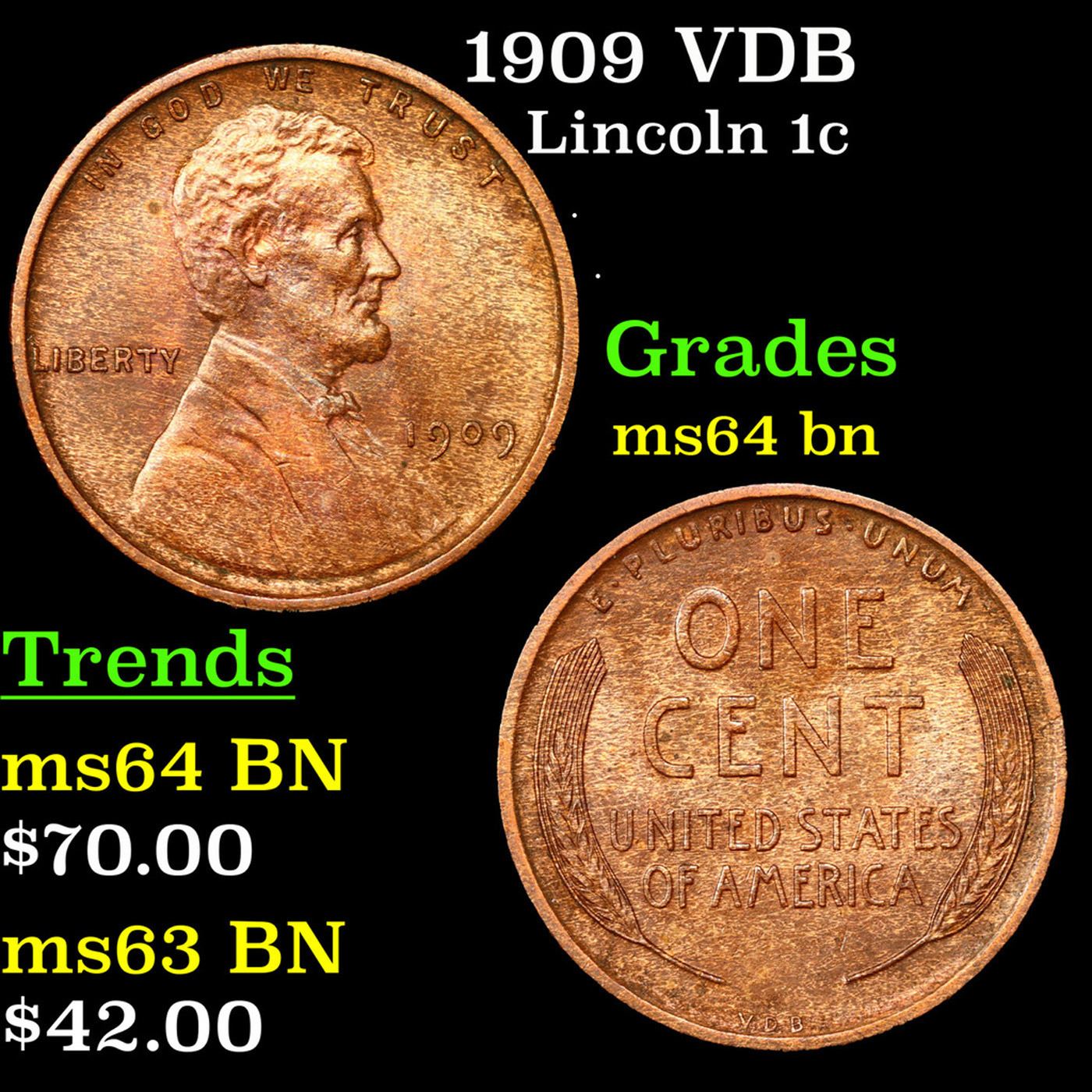 1909 VDB Lincoln Cent 1c Grades Choice Unc BN. Always sought after date. Always popular.