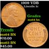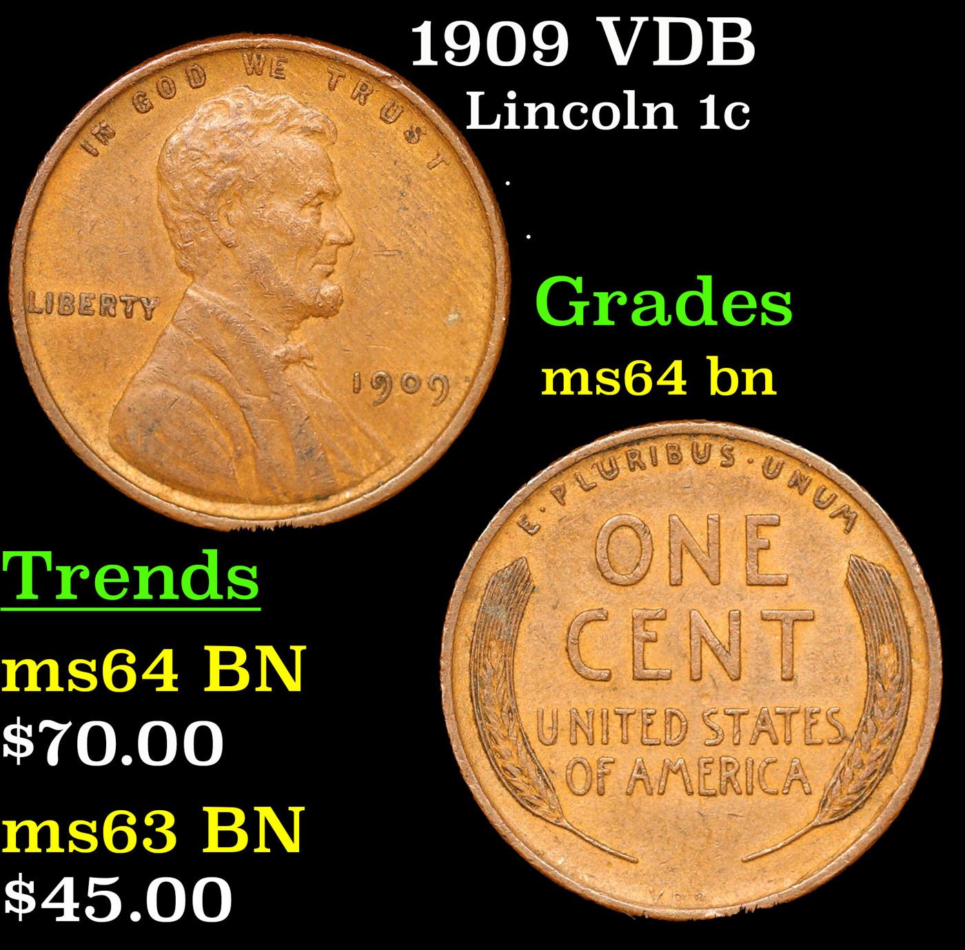 1909 VDB Lincoln Cent 1c Grades Choice Unc BN. Always sought after date. Always popular.