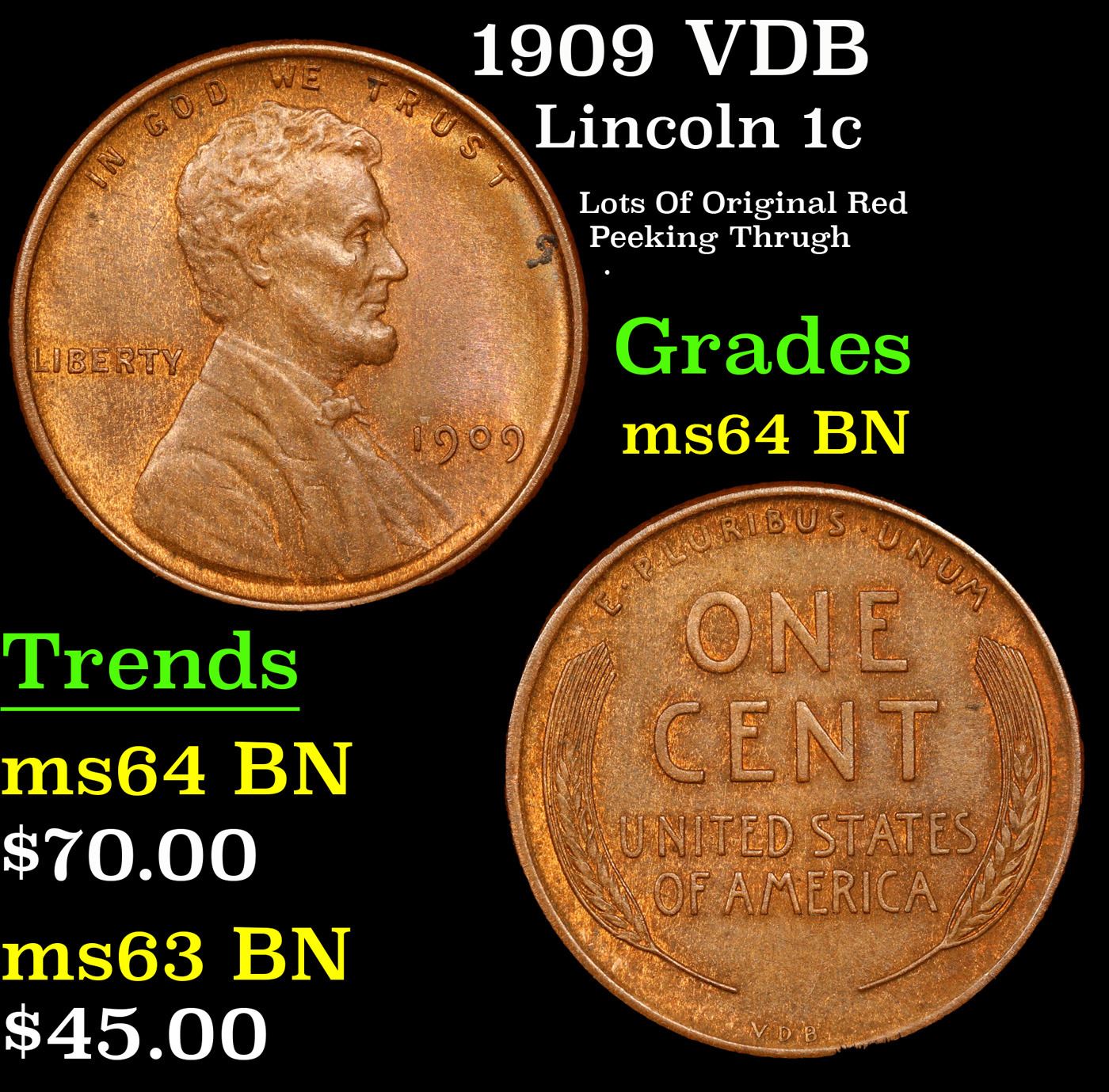 1909 VDB Lincoln Cent 1c Grades Choice Unc BN. Always sought after date. Always popular.