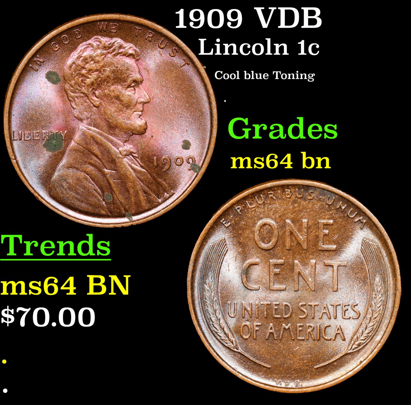 1909 VDB Lincoln Cent 1c Grades Choice Unc BN. Always sought after date. Always popular.