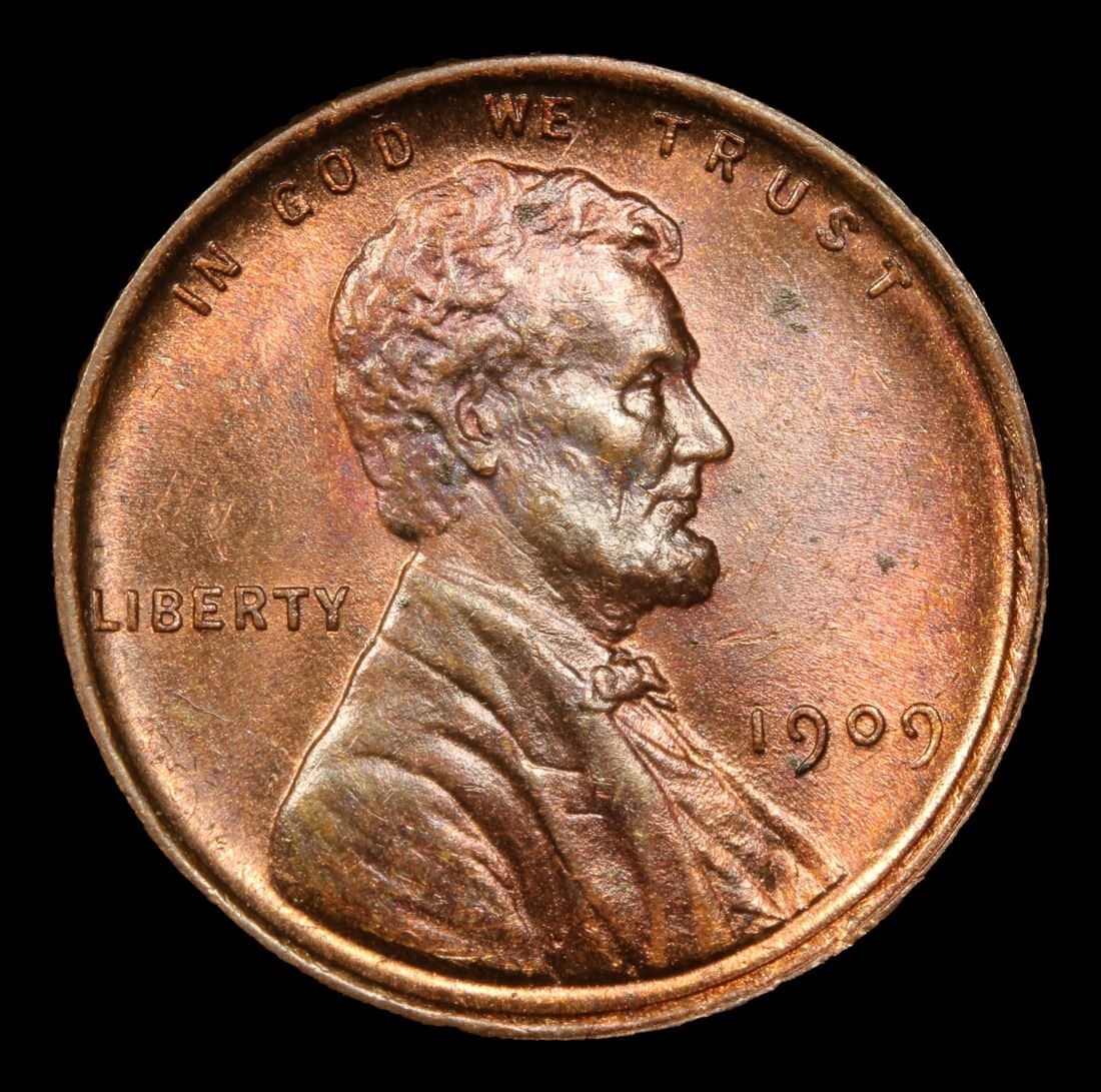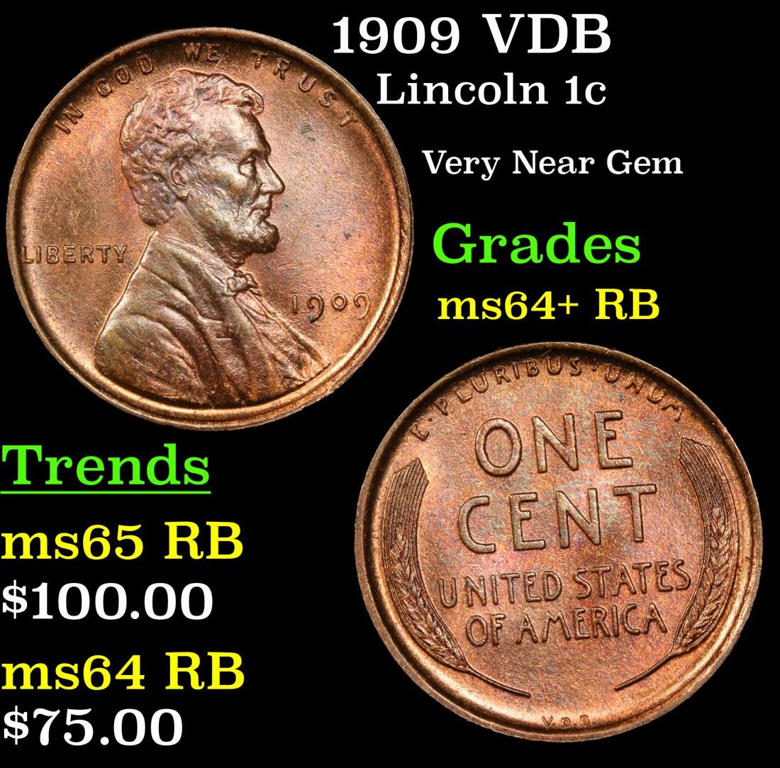 1909 VDB . Very Near Gem Lincoln Cent 1c Grades Choice+ Unc RB. Always sought after date. Always popular.