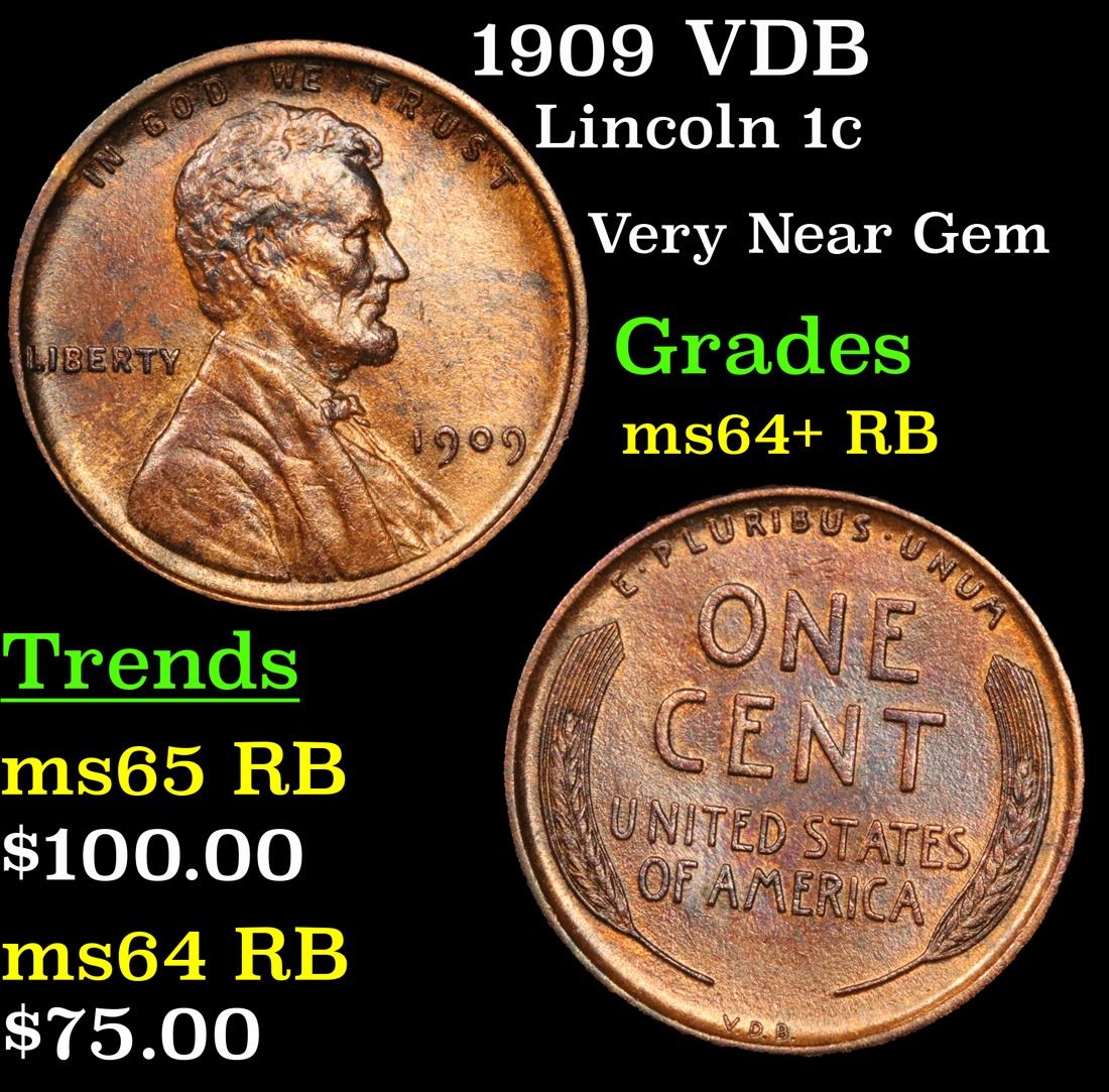 1909 VDB . Very Near Gem Lincoln Cent 1c Grades Choice+ Unc RB. Always sought after date. Always popular.