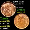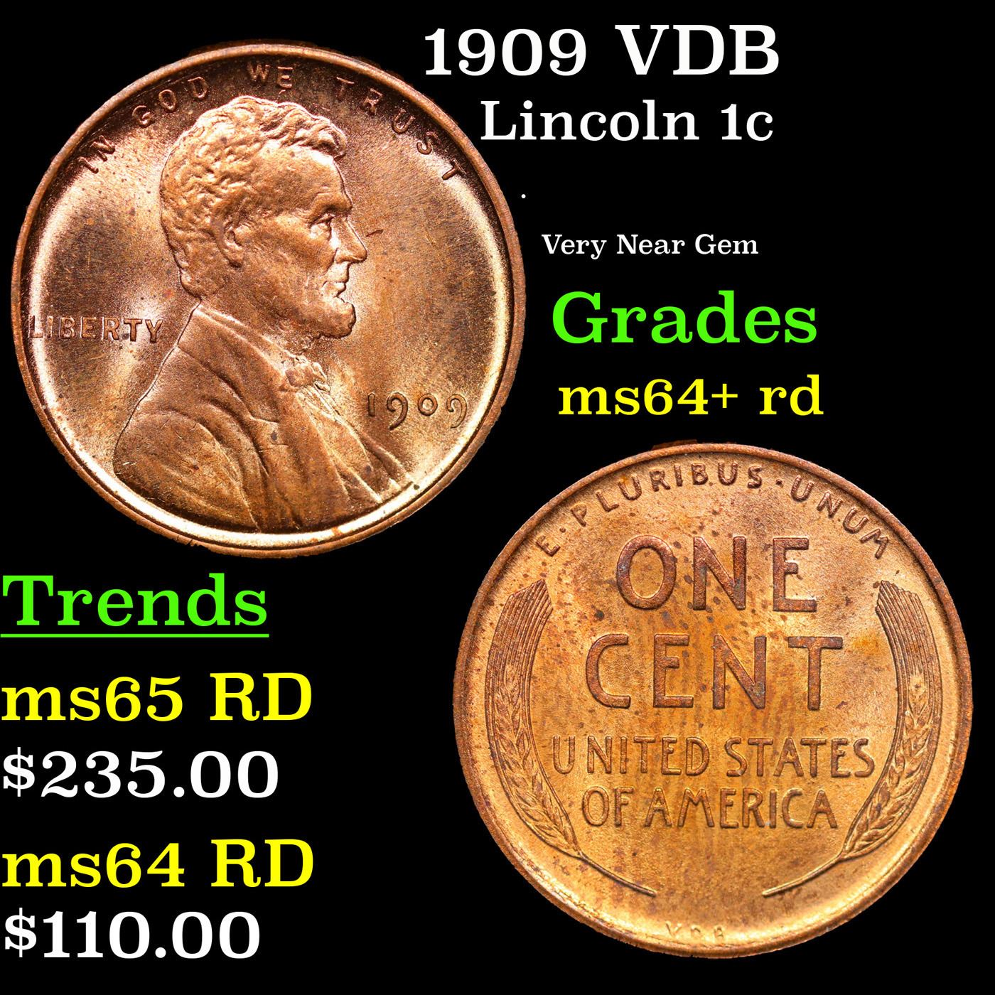1909 VDB Lincoln Cent 1c Grades Choice+ Unc RD. Always sought after date. Always popular.
