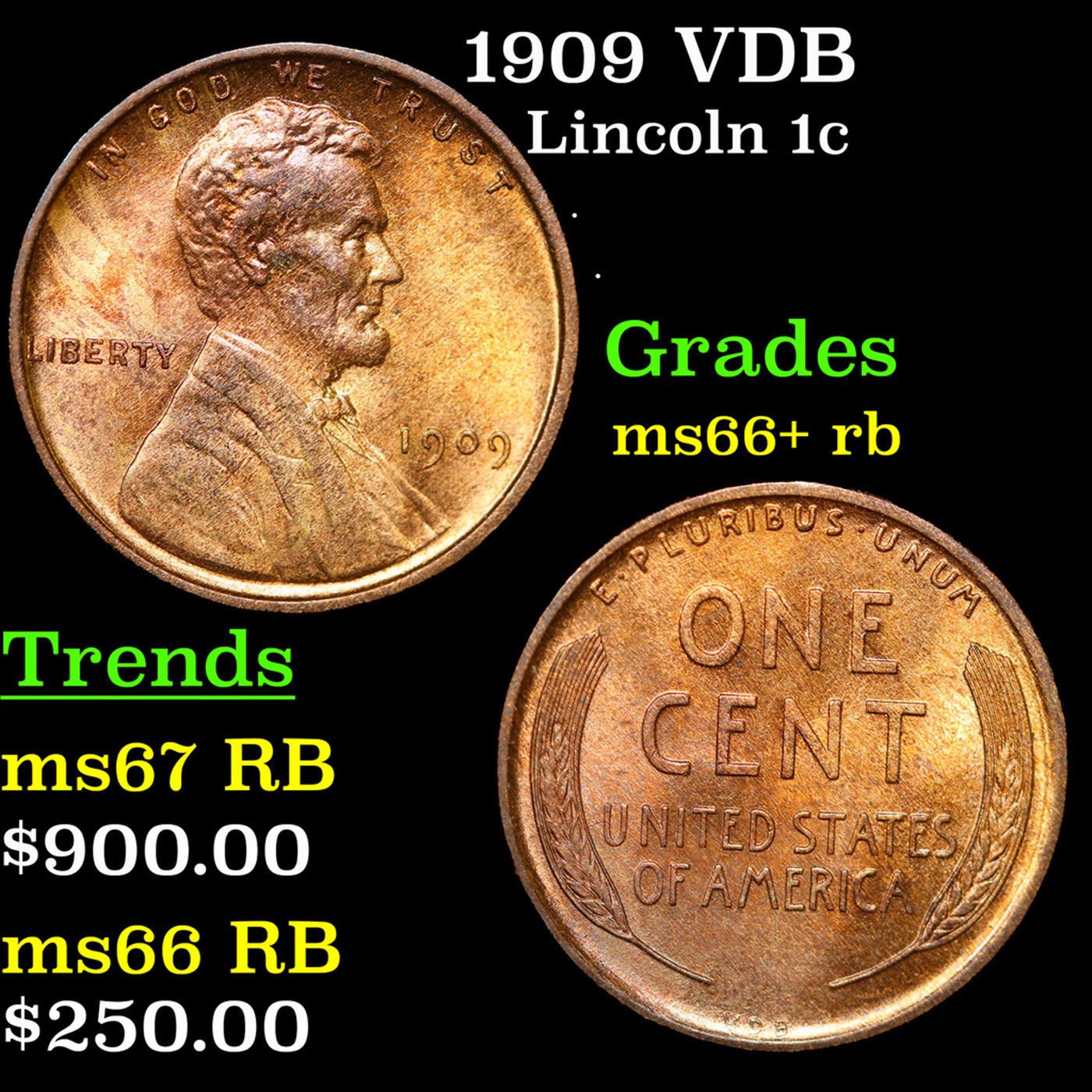 1909 VDB Lincoln Cent 1c Grades GEM++ RB. Always sought after date. Always popular.