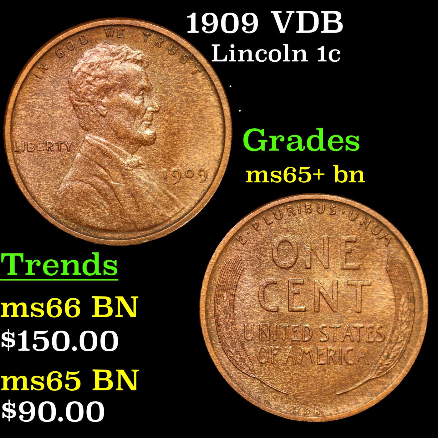1909 VDB Lincoln Cent 1c Grades GEM+ Unc BN. Always sought after date. Always popular.