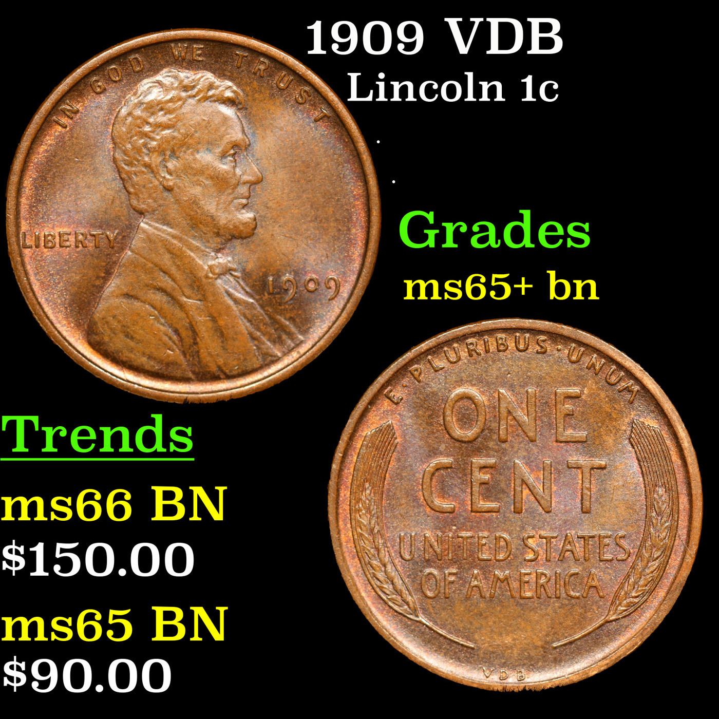 1909 VDB Lincoln Cent 1c Grades GEM+ Unc BN. Always sought after date. Always popular.