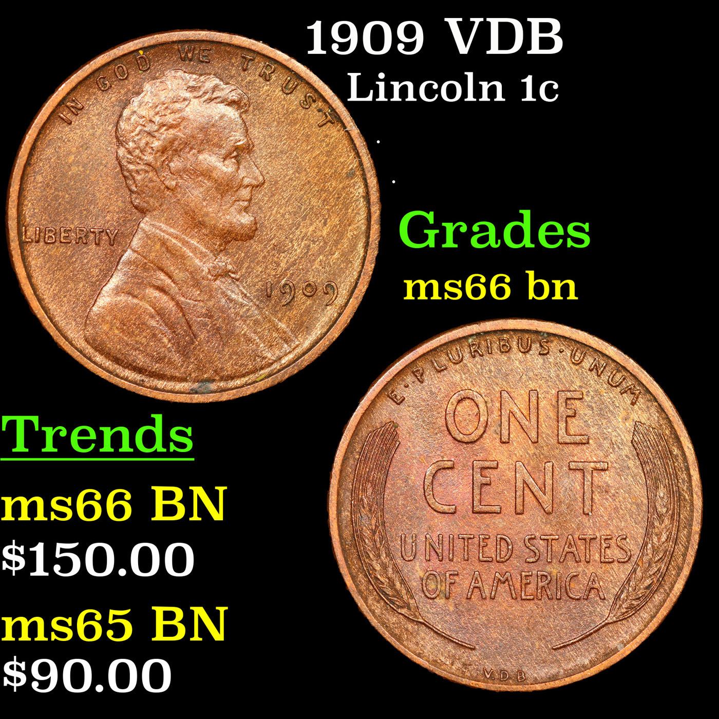 1909 VDB Lincoln Cent 1c Grades GEM+ Unc BN. Always sought after date. Always popular.