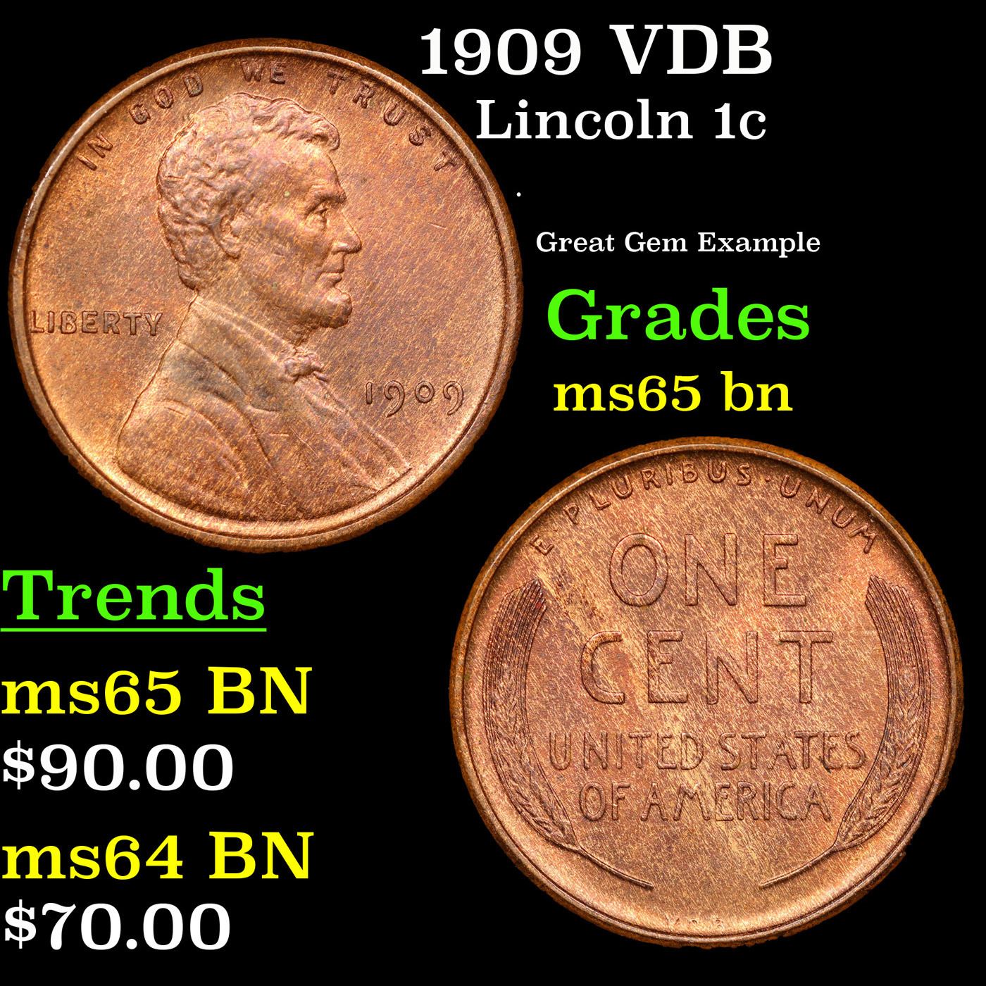 1909 VDB Lincoln Cent 1c Grades GEM Unc BN. Always sought after date. Always popular.