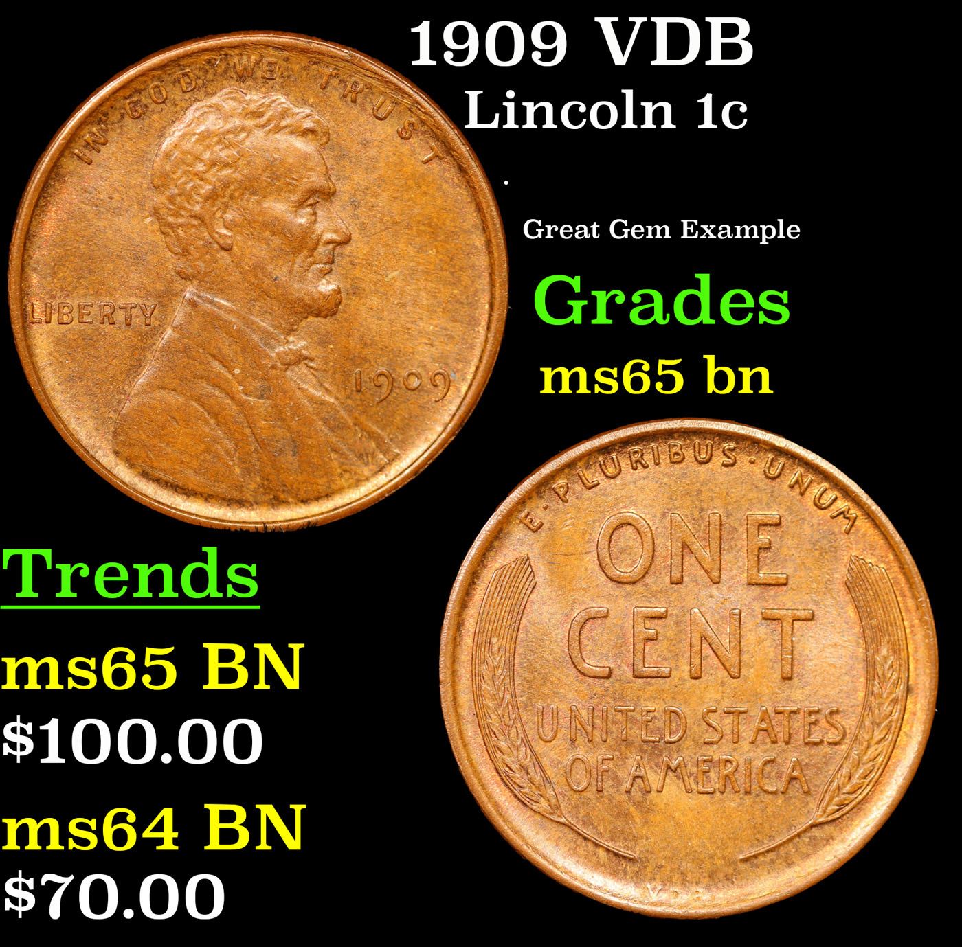 1909 VDB Lincoln Cent 1c Grades GEM Unc BN. Always sought after date. Always popular.