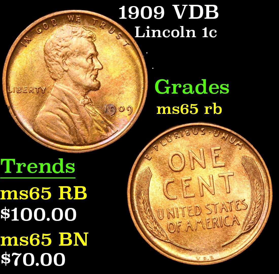 1909 VDB . . Lincoln Cent 1c Grades GEM Unc RB. Always sought after date. Always popular.