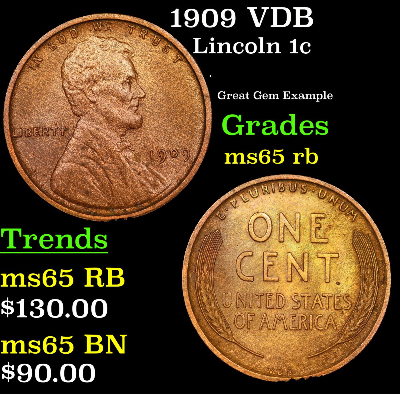 1909 VDB Lincoln Cent 1c Grades GEM Unc RB. Always sought after date. Always popular.