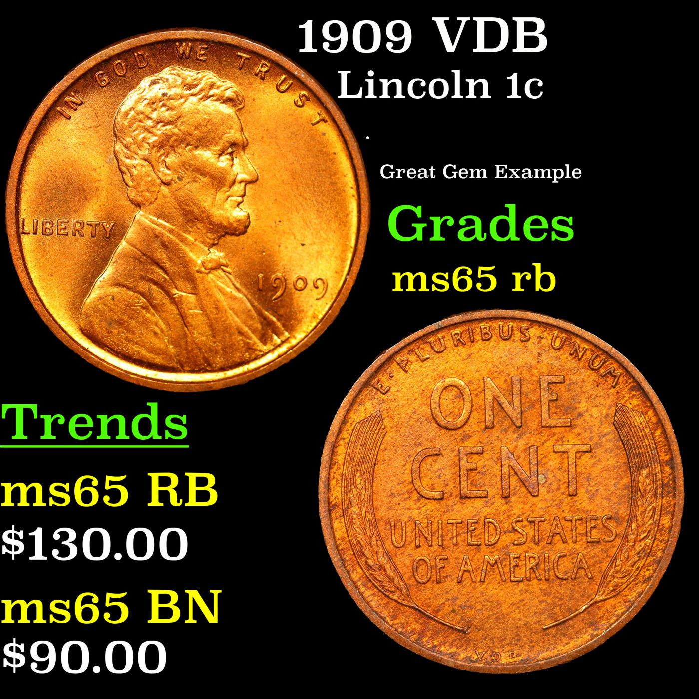 1909 VDB Lincoln Cent 1c Grades GEM Unc RB. Always sought after date. Always popular.