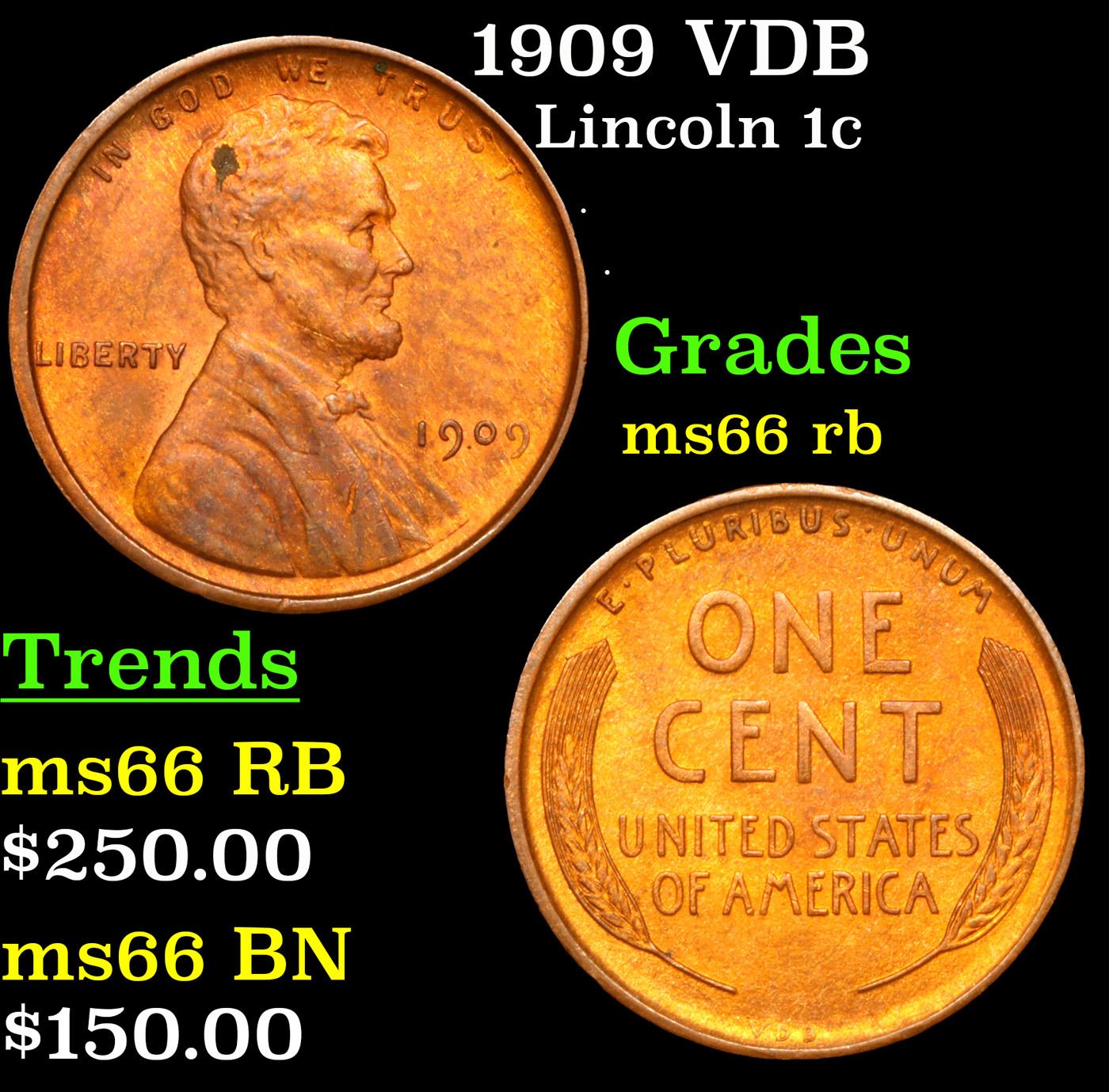 1909 VDB Lincoln Cent 1c Grades GEM+ Unc RB. Always sought after date. Always popular.