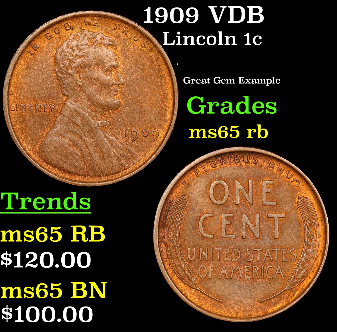 1909 VDB Lincoln Cent 1c Grades GEM Unc RB. Always sought after date. Always popular.