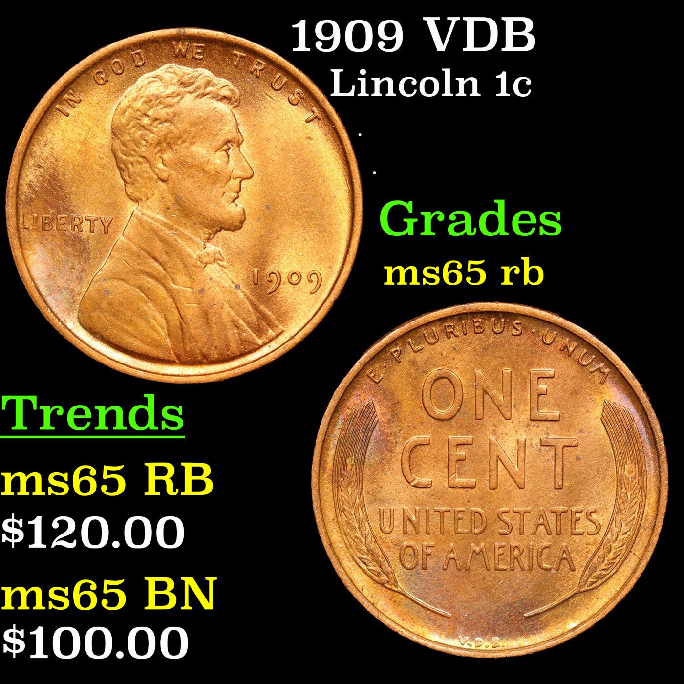 1909 VDB Lincoln Cent 1c Grades GEM Unc RB. Always sought after date. Always popular.