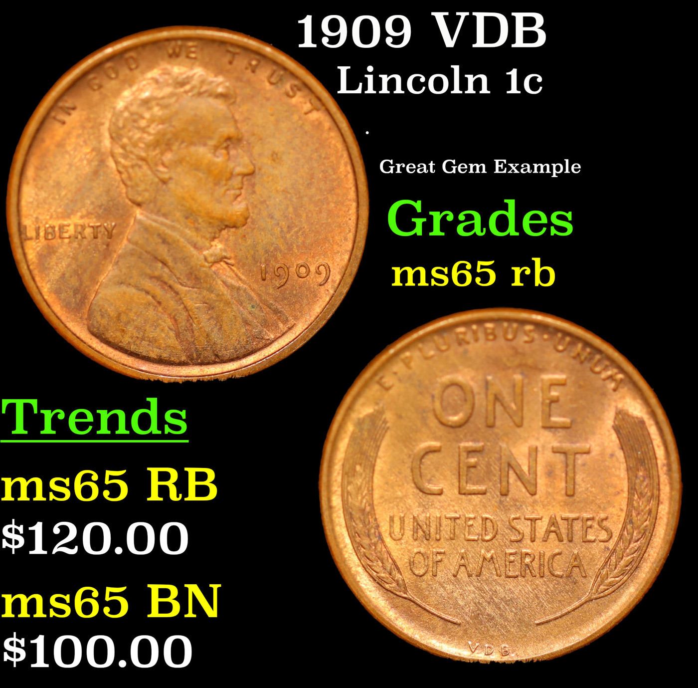1909 VDB Lincoln Cent 1c Grades GEM Unc RB. Always sought after date. Always popular.