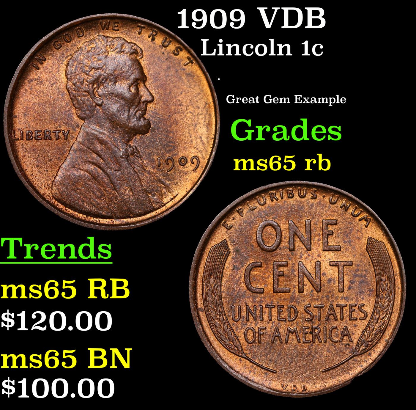 1909 VDB Lincoln Cent 1c Grades GEM Unc RB. Always sought after date. Always popular.