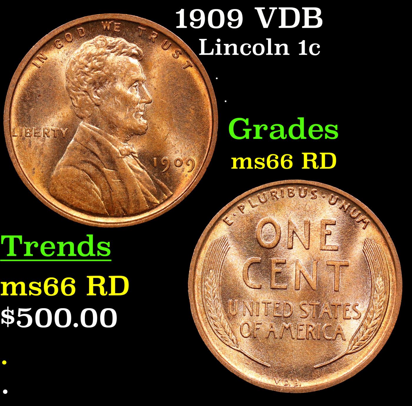 1909 VDB Lincoln Cent 1c Grades GEM+ Unc RD. Always sought after date. Always popular.