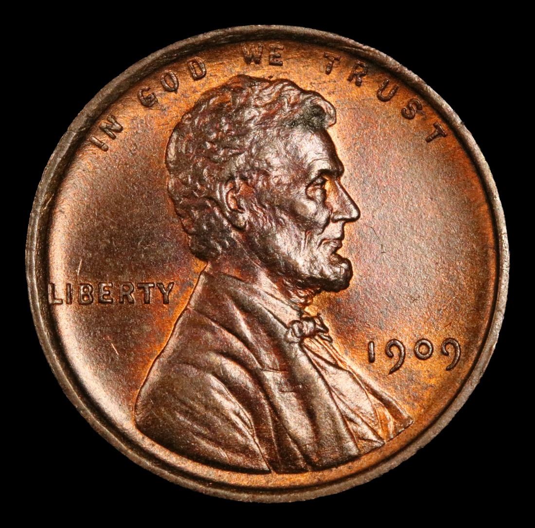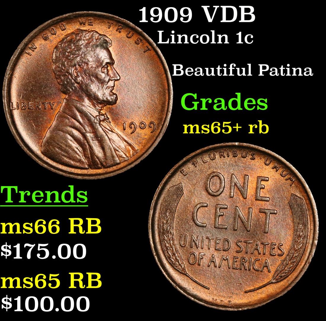 1909 VDB Beautiful Patina . Lincoln Cent 1c Grades Gem+ Unc RB. Always sought after date. Always popular.